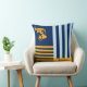 Coussin Old English Navy Blue and Orange Stripes With Name