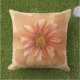 Habille ton mobilier de patio intérieur ou extérieur avec ce coussin décoratif carré qui présente l'image photo d'une Collarette orange Dahlia fleurit sur un arrière - plan couleur pêche. Un joli design floral ! Sélectionnez le style et le tissu coussin.