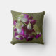 Un beau coussin photographique à fleurs stylisé avec magenta foncé violet et orchidées blanches contre des tons vert olive. Les orchidées de phalaenopsis mauve et blanche semblent tourbillonner autour de ce coussin élégant et unique. C'est la photographie florale originale de JLW_Photography.
