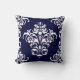 © 2014 Socialite Designs. Ajoutez un coussin décoratif classique bleu marine, rouge et blanc damassé à votre salon pour une touche élégante. Un côté est bleu et l'autre est rouge. Vous pouvez modifier la couleur de l'arrière - plan en customisant le coussin.