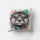 This throw pillow features otter art with colorful circular splashes. The otter is facing forward with a direct gaze.