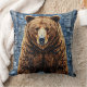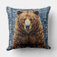 Œuvre d'art vibrante représentant un ours avec une riche fourrure texturée, sur un fond patchwork présentant des tons bleus et gris. L'ours se dresse de manière imposante et réaliste, captivant l'attention avec ses caractéristiques réalistes.