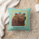 Coussin mignonne pour la chambre d'un enfant. Ours doux avec papillon sur la tête, encadré en jaune sur un coussin vert menthe. Personnalisez avec n'importe quel nom ou texte.