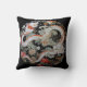 Ce coussin rond présente une paire de dragons blancs de style asiatique entourés de fleurs sur un arrière - plan noir. Cette conception a été créée avec l'aide de l'IA.