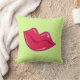 Une paire de lèvres rouges brillantes avec un peu d'étincelle et un contour pourpre et jaune. Des reflets blancs subtils lui donnent un aspect brillant. Arrière - plan vert citron.