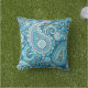 This outdoor pillow features a paisley floral pattern in shades of blue to brighten your patio, deck or porch.