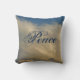 Une belle photo de ciel bleu et de nuage blanc est présentée sur cet oreiller de lancer et est complétée par le mot paix qui apparaît centré sur ce coussin. La couleur bleu foncé sur le dos de ce coussin peut être changée et il y a beaucoup de place pour ajouter du texte ou de la photo comme vous le souhaitez.