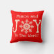 Paix et joie au monde typographie avec, traditionnel et classique flocon de neige épelant le mot Joy sur arrière - plan rouge. Ce coussin ajoutera de la couleur, de l'espoir et de la joie à toute pièce. Joyeux Noël à vous tous.
