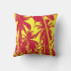 Un palmier tropical à effet postérifié rouge et jaune. Coussin design audacieux avec motif naturel des arbres. Palmiers tropicaux.