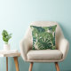 Cet élégant oreiller à jetons est doté de feuilles lumineux et vert foncé de palme et de monstère. L'arrière - plan est de couleur blanche et claire
