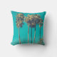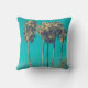 Un coussin avec une belle photo. De grands palmiers avec de longues troncs maigres devant un beau ciel vert. Jeu de couleurs rétro. Détente et détente.