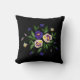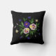 Beau coussin design broderie avec bouquet Pansie violet, bleu et blanc sur arrière - plan noir fait une décoration extraordinaire maison. Un cadeau parfait pour un anniversaire, un mariage ou une fête pour le ménage. Un grand cadeau pour les amoureux de la nature.