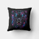 Graphisme cyberpunk intense représentant une panthère noire grondante aux yeux bleus lumineux surlignés de motifs de circuit imprimé rose néon et sarcelle sur un fond noir d'encre.