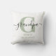 Coussin Papi Monogramme Écriture Élégante Vert Argenté