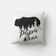 Grand ajout au décor de Fêtes ou pour toute l'année dans le cabine en rondins, cet oreiller de lancer correspond à nos autres invitations de vacances motifs tartans en vichy et autres accessoires. Le dessin comporte un motif à flanelle rayée noir et blanc sur le dos pour compléter l'ours noir solide avec des arbres à feuillage persistant et les mots "papa ours" sur le devant.