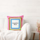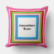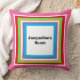 Motif amusant et girly avec le nom de la pièce écrit en typographie noire sur fond blanc. Monogramme au dos en blanc sur fond rose vif uni. Carrés géométriques bleu ciel, blanc, pêche clair, vert citron, rouge, rose. Création originale © TamiraZDesigns.