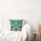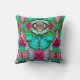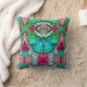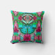 Coussin dans un batik numérique motif d'un grand papillon sur un arrière - plan médaillon arabesque orné, dans les tons turquoise et rose rose profond