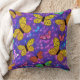 De beaux papillons jaunes, roses, oranges et verts avec en arrière-plan des néons lucioles sur un arrière - plan bleu. Les lucioles floues donnent au design un effet 3D cool qui donne l'impression que les papillons sortent du coussin.