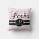 Ce carreau rose et blanc mou de MoJo d'Américain de motif de damassé avec le monogramme personnalisé, le mot Paris avec Tour Eiffel et une ligne des diamants blancs imprimés sur une bande noire semblera extraordinaire dans votre chambre à coucher ou salon comme coussin d'accent. La galerie Gifts© Elke Clarke de monogramme conçoit le ©
