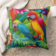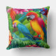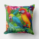 Coussin Parrot 3 Oiseaux Tropical Floral palmiers bleu ver