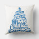 Coussin Parties scintillant bleue et arbre de Noël blanc