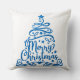 Parties scintillant blanche et faux bleu Joyeux coussin de Noël.
