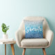 Une petite fille lance l'oreiller pour elle avec une fausse parties scintillant de luxe avec étincelle. Les couleurs ombres dans l'art numérique faux parties scintillant sont argent, gris, aqua, azure, bleu et marine légère. Le nom est composé d'un blanc moderne écrit à la main, écriture manuscrite style calligraphie de script de brosse. Customisez la couleur, la taille et le style de la police dans cette conception de texte. Vous trouverez une poignée de calligraphies audacieuses et modernes dans le système. Pour les noms plus courts, vous pouvez augmenter la taille de la police. L'arrière du coussin est uniquement décoré d'un art numérique en bloc de couleur brillant. Copiez et collez son nom si vous le souhaitez des deux côtés.