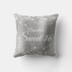 Fabuleux doux glamour 16 girly jetez oreiller pour votre fille. L'avant affiche le chiffre seize dans une image texte bulle gonflable. L'image arrière - plan présente une feuille de style métal brossé gris argenté à l'ombre argentée avec un art numérique de parties scintillant en faux argent. À l'arrière, vous pouvez customiser le style de police, la couleur et la taille selon vos besoins. Les scintillants de luxe, la parties scintillant et la feuille seront créés avec des éléments artistiques créatifs qui s'impriment comme une photo.