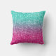 Créez votre propre oreiller de carré pour elle avec un dégradé de parties scintillant de luxe imitation turquoise et rose chaud. Ajoutez un monogramme derrière le nom donné pour créer votre propre monogrammed personnalisé. Le texte personnalisé comprend un script de calligraphie moderne écrit à la main de style brosse. Customisez le texte et le style de police dans cette conception. L'art numérique de la loterie rose vif et turquoise clair s'imprime comme une photo sur votre cadeau.