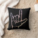 coussin cool qui est parfait pour tous ceux qui aiment la langue des signes et dire Je t'aime. Avec une main I Love You in Sign Language. Entièrement personnalisable. De notre collection de Coussins en Langue des Signes.