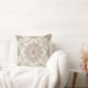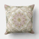 A delicate pastel mosaic throw pillow featuring opalescent glass-like petals arranged in intricate mandala and floral forms. This seamless pattern blends soft shades of blush pink, sage green, ivory, and champagne beige with elegant geometric detailing, evoking the charm of hand-crafted stained glass art.