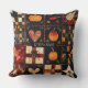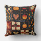 Cet oreiller à jetons présente un motif de couette à l'art folklorique arrangé dans un patchwork de blocs carrés. La courtepointe présente des motifs d'inspiration automnale comme des citrouilles, des oiseaux, des coeurs d'appliquer et une étoile blanche audacieuse, ainsi que des motifs à damier et à pièces géométriques pour une texture plus grande. Les détails subtils de la vigne et du feuillage enrichissent l'esthétique rustique, tandis que la palette chaude de l'orange, noir, rouge et crème capture l'essence de l'automne. Parfait pour Thanksgiving, décor de ferme, artisanat primitif et motifs de tissu saisonniers, ce motif allie tradition chaleureuse et charme d'art populaire.