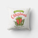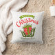 Joyeux Oreiller de Noël Rouge Vert Motif de Flamme de neige Jeu Oreiller a un design à deux côtés. Le front a un traîneau avec un présent et la joyeux typographie de Noël. Le dos est un tout petit motif de flocon de neige sur arrière - plan vert