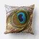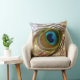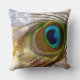 Un coussin de vacances glamour avec une belle plume de paon, une moule argentée et des lumières de Noël étincelantes