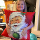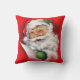 Le coussin présente une illustration rétrograde du milieu du siècle d'un Saint Nicolas en train de couler en vérifiant sa liste coquine ou jolie.
