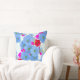 Cet imprimé d'oreiller de lancer présente un affichage décalé de fleurs de pétunia contre une toile blanche avec un cyan clair, carré, motif de conception de ligne, ce qui donne un contraste spectaculaire.