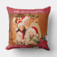 Photos de famille Poinsettia décoration cadeau de Noël jetez oreiller avec l'année et art stylisé à clip floral rouge et blanc.