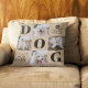 Coussin commémoratif personnalisé avec 4 photos de vous bien-aimés doggy, un rustique arrière - plan d'impression de burlap de pays, des lettres qui épellent DOG, les mots "pour toujours dans nos coeurs", une patte de chien avec un dicton de souvenir, et leur nom.