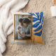 Cet élégant oreiller à jetons personnalisé présente une illustration botanique abstraite d'inspiration Matisse moderne en bleu cobalt et jaune encadrant votre photo préférée.