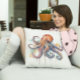 Coussin pieuvre colorée en aquarelle grands yeux