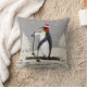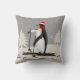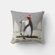 Pingouin mignon sur le ski portant un chapeau de Père Noël et une écharpe rouge. Ce beau manchot est prêt à commencer ses vacances sur les pistes. Espace disponible pour la personnalisation avec le texte si vous le souhaitez. Cet oreiller de lancer présente un beau manchot, joli, dessiné à la main sur une pente de neige avec 2 arbres de Noël.