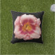Décorez votre maison ou patio extérieur avec cet oreiller carré qui projette la photo d'une fleur de jour rose sur un arrière - plan noir. Un joli design floral ! Sélectionnez votre taille de coussin et votre style de tissu.