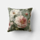 Beautiful pink and white watercolor peonies with mixed greenery on a sage green background were used to create this elegant throw pillow.