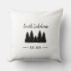 Petit oreiller noir et blanc, avec pins rustiques. Personnalisez le design pour votre cabine de maison de lac ou de maison de vacances.