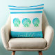 Coussin Plage bleu turquoise vie script 3 coquillages