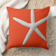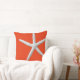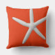 Ce coussin moderne de couleur orangée de corail côtier présente une étoile de mer blanche tropicale et convient parfaitement à la maison de plage, au chalet de plage, à la décoration nautique, côtière ou à la décoration de maison sur le thème de la plage, ou si vous vivez près de l'océan. Photographie du corail et du dessin © par TK Goforth, tous droits réservés.