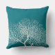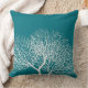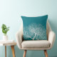 Ce coussin moderne côtier bleu turquoise et profond est orné de corail tropical d'arbre de mer blanc sur un arrière - plan bleu profond et turquoise. Il est parfait pour la maison de plage, le cottage de plage, ou pour le décor marin, côtier ou sur le thème de la plage, ou si vous vivez près de l'océan. Photographie du corail et du dessin © par TK Goforth, tous droits réservés.