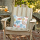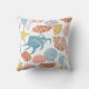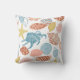Ce coussin de plage en plein air d'été dispose d'un motif de coquillages colorés dans les tons bleu, turquoise et corail, sur un arrière - plan blanc.