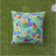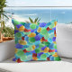 Ce coussin extérieur coloré d'été est décoré d'un motif de verre de mer aux tons de bleu, d'aqua, de vert, de violet, de jaune et de rouge, dans les tons de bijoux.
