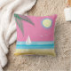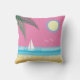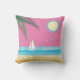 Ce coussin amusant est décoré d'une scène de plage tropicale agrémentée d'étoiles de mer, de mouettes, d'un voilier et de feuilles de palmiers sur un arrière - plan de ciel rose, ce qui en fait l'accessoire parfait en été pour le salon, la chambre, le cottage, le patio, le pont ou la piscine.